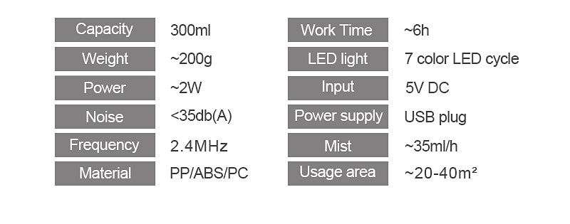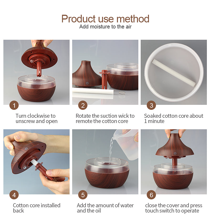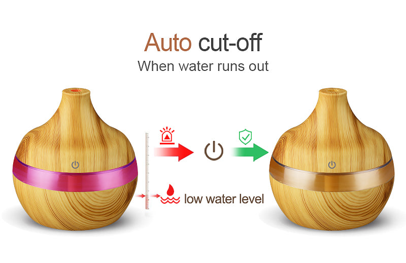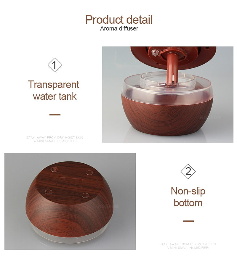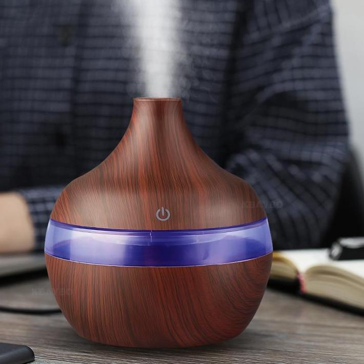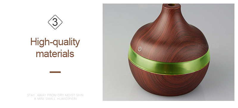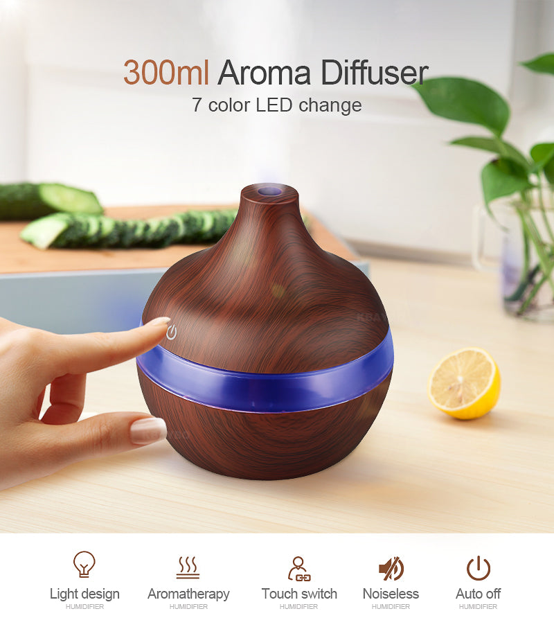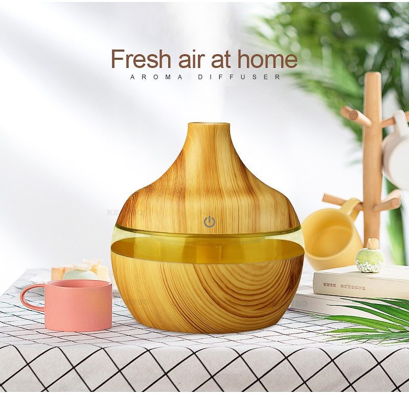 Wood grain design Aroma Diffuser & Humidifier, capacity 300ML of water with essential Oils, 7 color LED Lights, USB charge.